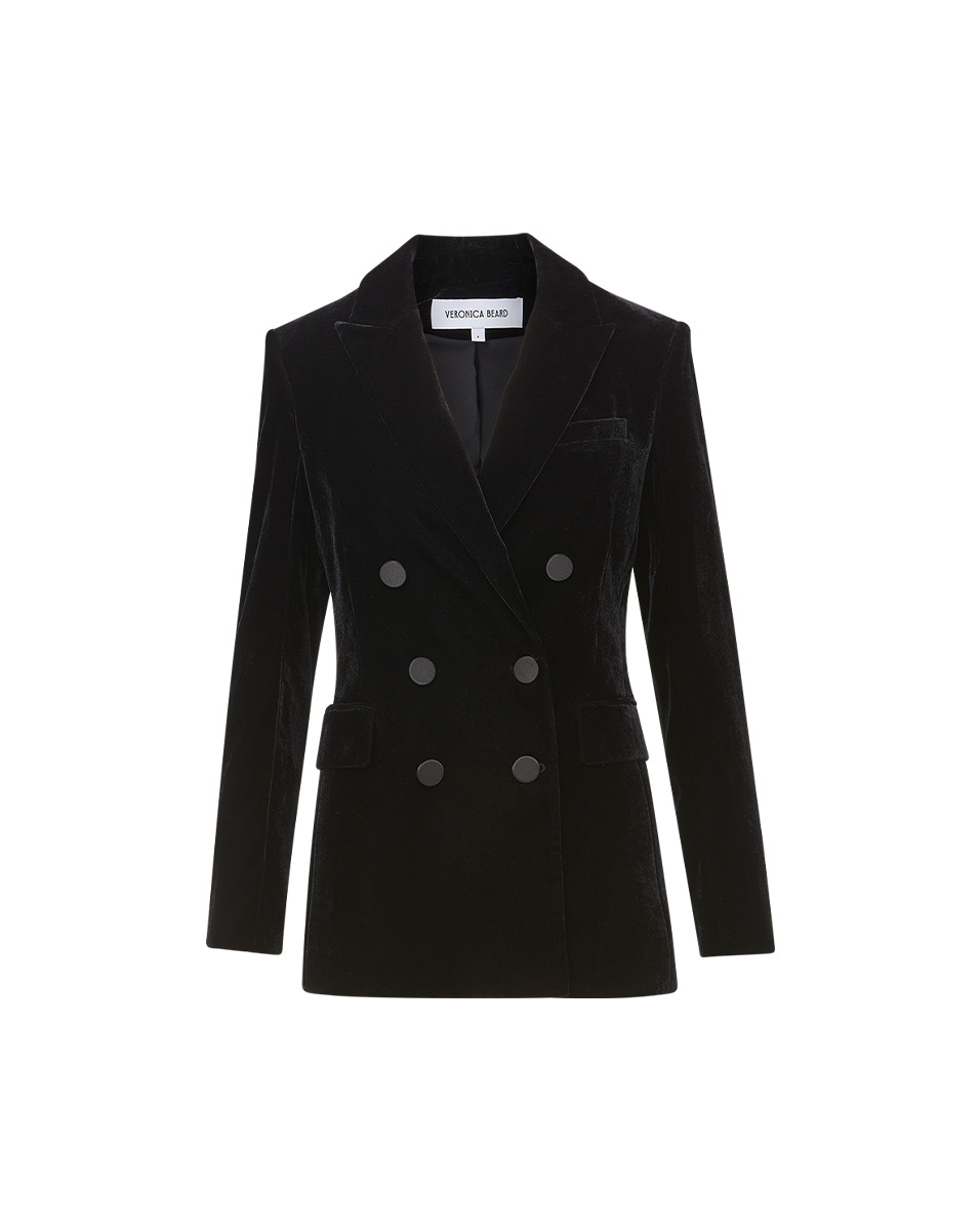 Product details A statement jacket, in luxurious velvet. Expertly tailored for an elongated, relaxed fit, the Ellette drapes beautifully on the body and is finished with satin buttons and a peak lapel. Whether worn with dresses or jeans or paired with the matching velvet pant, this makes for a memorable evening look. - 75% Rayon, 25% Polyamide - Lining: 100% Polyester - Dry clean only - Style #2409VL151682