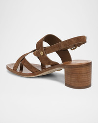 - Veronica Beard "Elodie" soft suede sandals - 2.00 in / 50 mm block heel - Crisscross toe strap - Strappy vamp - Adjustable slingback strap - Lining: Leather - Spot clean - Imported