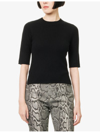 PRODUCT DETAILS - Veronica Beard cashmere jumper - 100% cashmere - Slim fit, round-neck, short sleeves, all-over knitted and ribbed, split at sides - Dry clean only - True to size - Model is 5ft 10in/1.78m and wears a size small - Midweight, stretchy Ref: R04535642