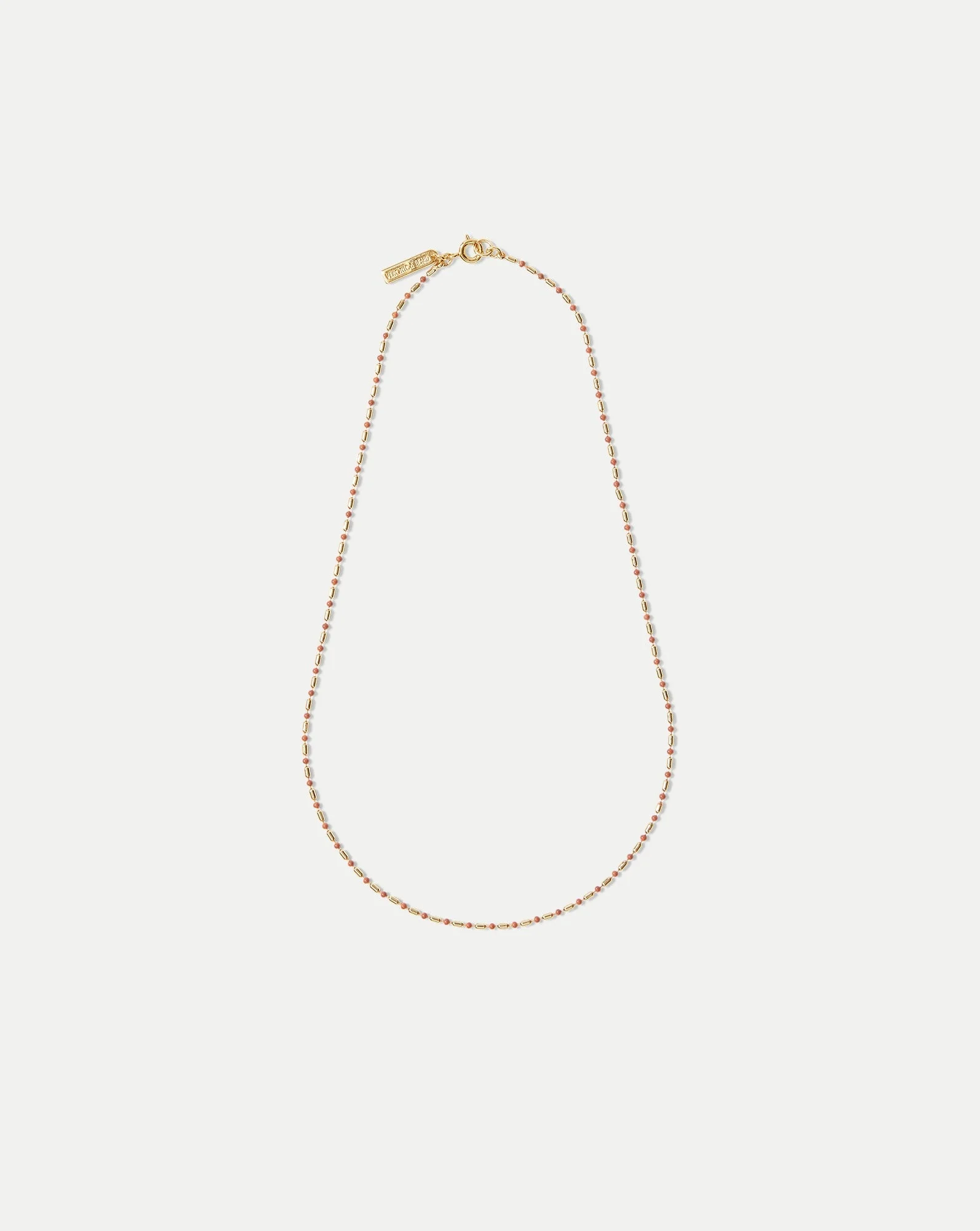Product details The effortless everyday necklace, made for layering. This dainty, 16-inch chain features a mix of 12-karat gold-plated brass and mauve enamel-covered beads, securing with a Q clasp for ease. Layer with the Long Enamel Bead Chain Necklace (or two, or three), mixing and matching colors, and style with your favorite VB tees, tank tops, and swimwear. - Details: 12k Gold-Plated Brass, Enamel - Length 16” - Gently wipe surface with a soft cloth to clean. Avoid direct contact with lotions, perfumes, or oils. - Style #96-N0001