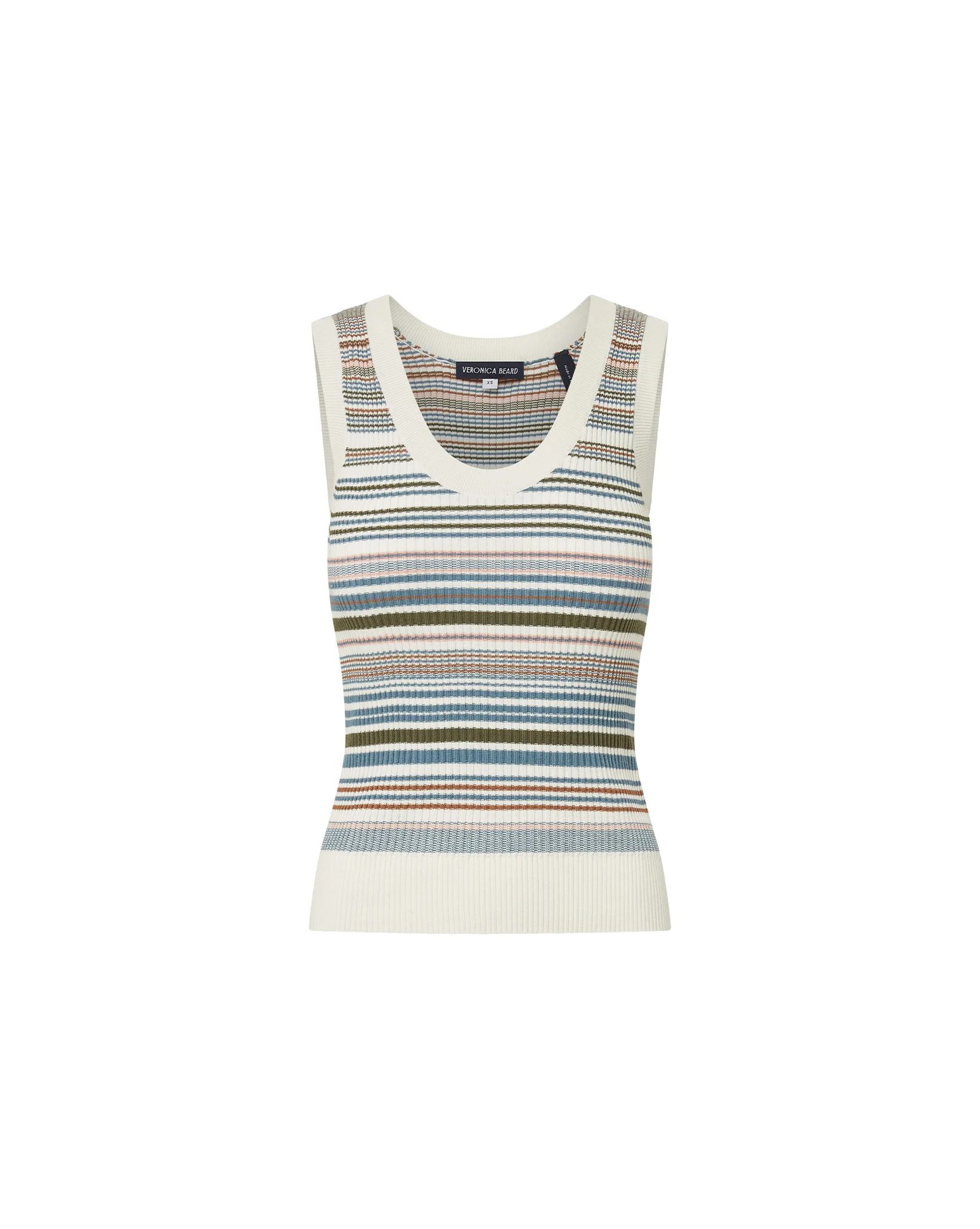 Product details An essential, elevated. Spun from 100% breathable cotton, the Ezinna tank top features wide straps, a scoop neck, and chic sunset-colored stripes. A white trim and textured ribbing complete the look of this effortless staple. Great on its own or as a layering piece, this casual style pairs with jeans, shorts, skirts, you name it. - 100% Cotton - Dry clean only - Style #2506KC4890767
