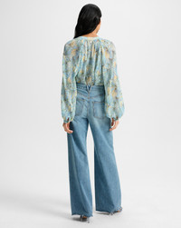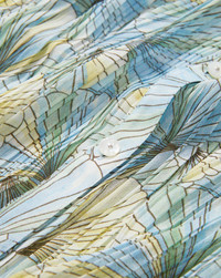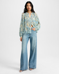 Product details The ultimate in feminine ease. Made from a premium stretch fabrication, the Fennel blouse is defined by allover pleating and a custom painted shell pattern in pale blue and yellow. Cut for a breezy, relaxed fit, the button-down shirt features a split-V neckline and gently voluminous bishop sleeves. Pair with jeans to elevate the everyday. - 100% Polyester - Unlined - Style #2505CF1441279