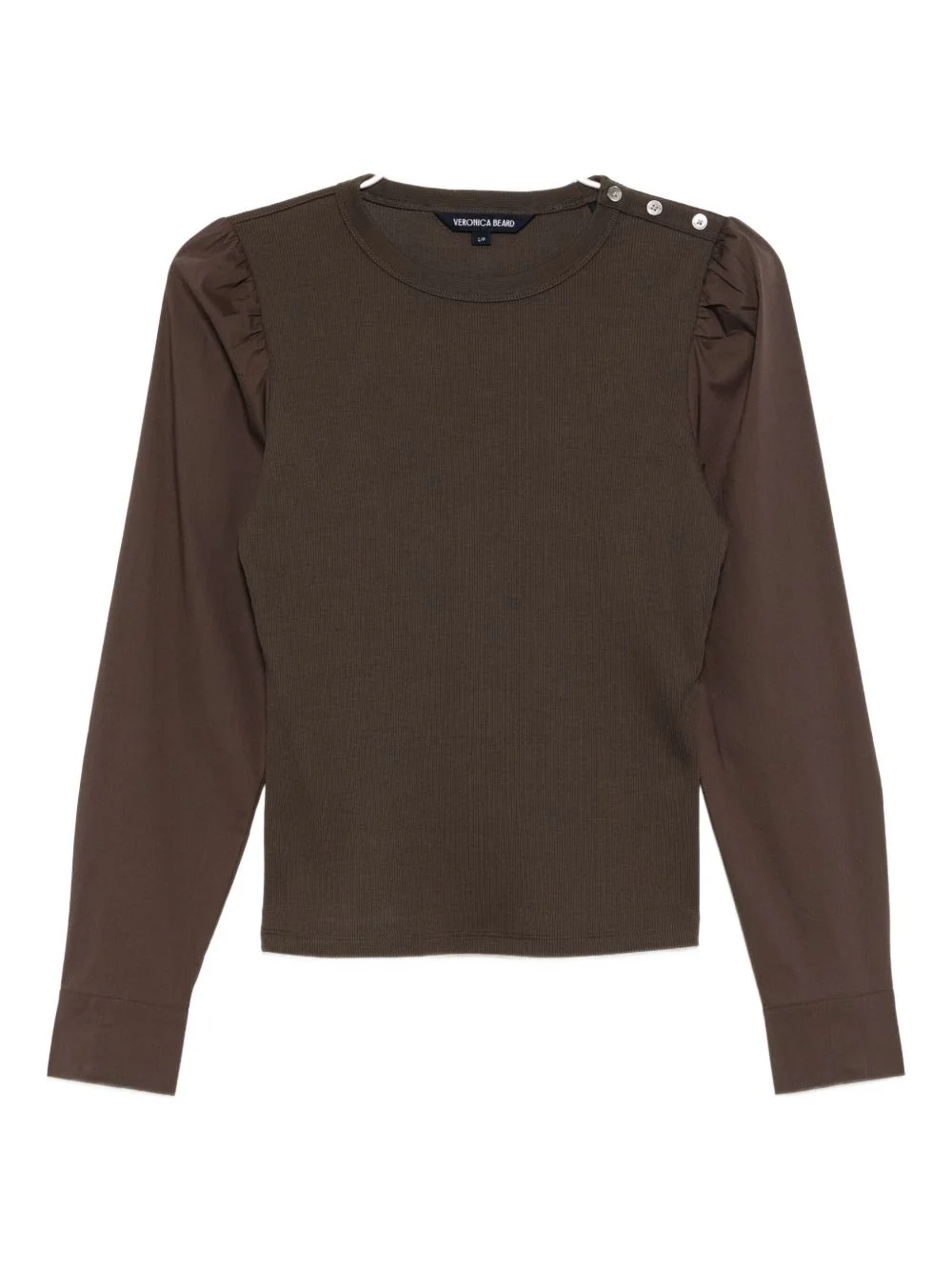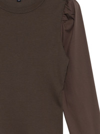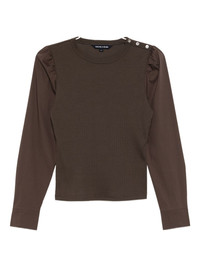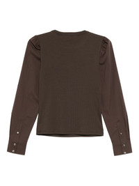 Fersia mixed-media tee Highlights - Dark umber - Button fastening at the shoulder - Mutton sleeves - Buttoned-cuff sleeves Imported Composition Cotton 96%, Elastane 4% Washing instructions Machine Wash