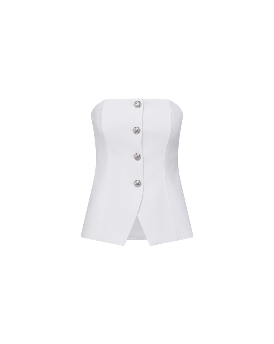 Product details An elevated take on the classic bustier. The Forman is defined by a streamlined, strapless silhouette and an angled cutaway hem. Try it with wide-leg denim for date night and with a miniskirt for dressier evenings. - 63% Polyester, 27% Viscose, 7% Cotton, 3% Elastane - Lining: 100% Polyester - Dry clean only - Style #2408SU00240756