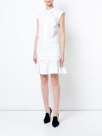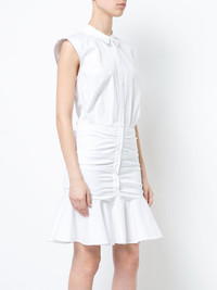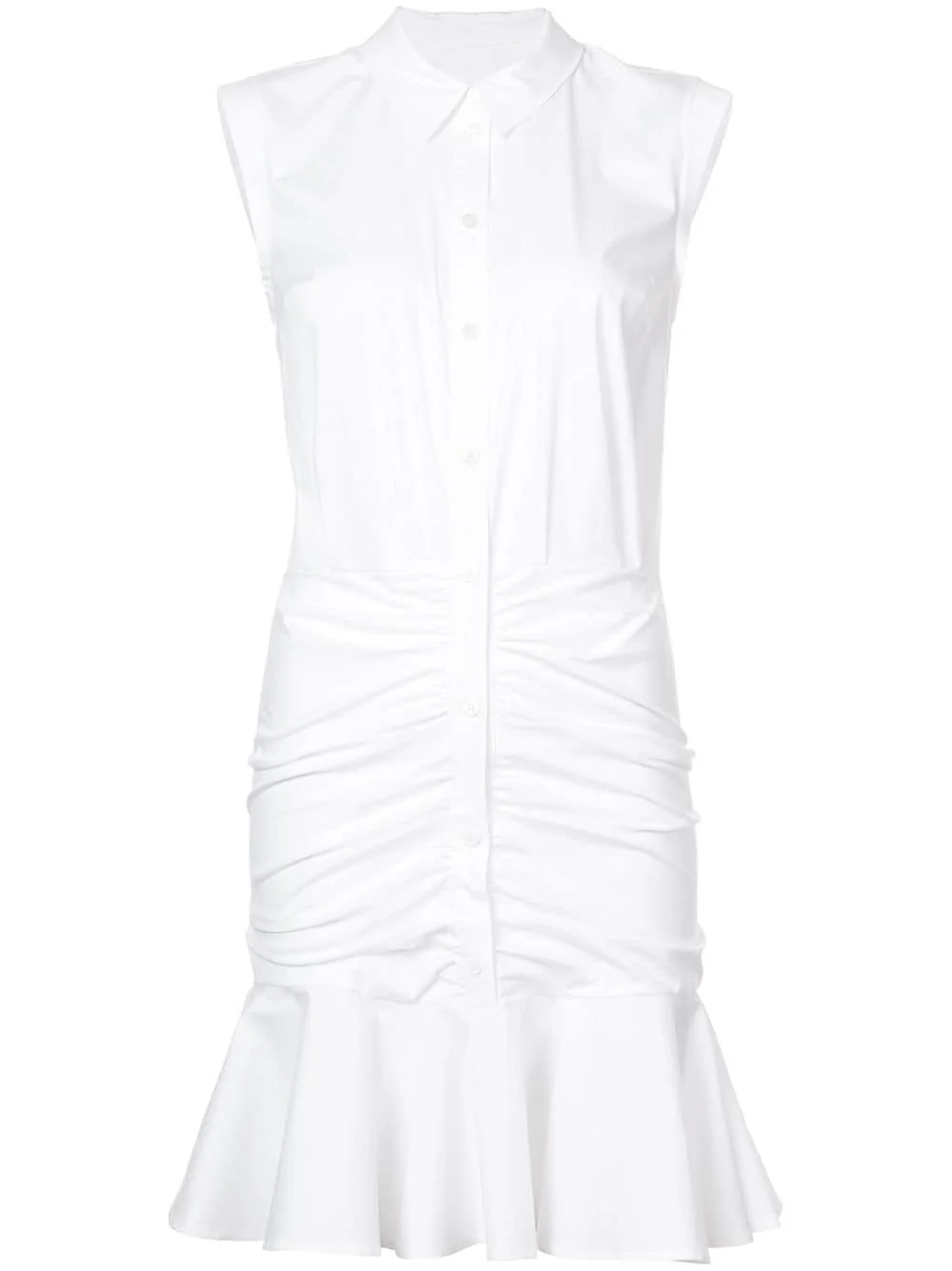 frill-trim shirt dress White cotton blend frill-trim shirt dress from Veronica Beard featuring a round neck, a sleeveless design, a fitted waist, a short length and a frill trim. Imported Composition Cotton 97%, Spandex/Elastane 3% SIZE & FIT Measurement LENGTH 40.94 in(104 cm) WAIST 33.07 in(84 cm) HIPS 40.94 in(104 cm) Washing instructions Dry Clean Only