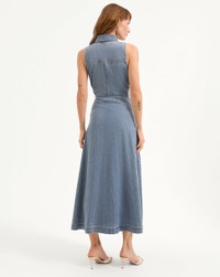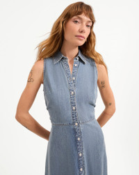 Product details Equal parts polished and effortless, Fuller is the easy midi dress you'll reach for again and again, crafted from soft, lightweight denim in classic blue. This collared, button-down dress features a darted bust and ruched waist, falling to a full, flowing skirt to create an ultra-flattering A-line silhouette. Pair it with ballet flats or strappy sandals for a chic spring look. - Details: 100% Cotton - Unlined - Machine wash cold with like colors - Style #J25047100134GC