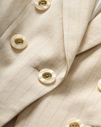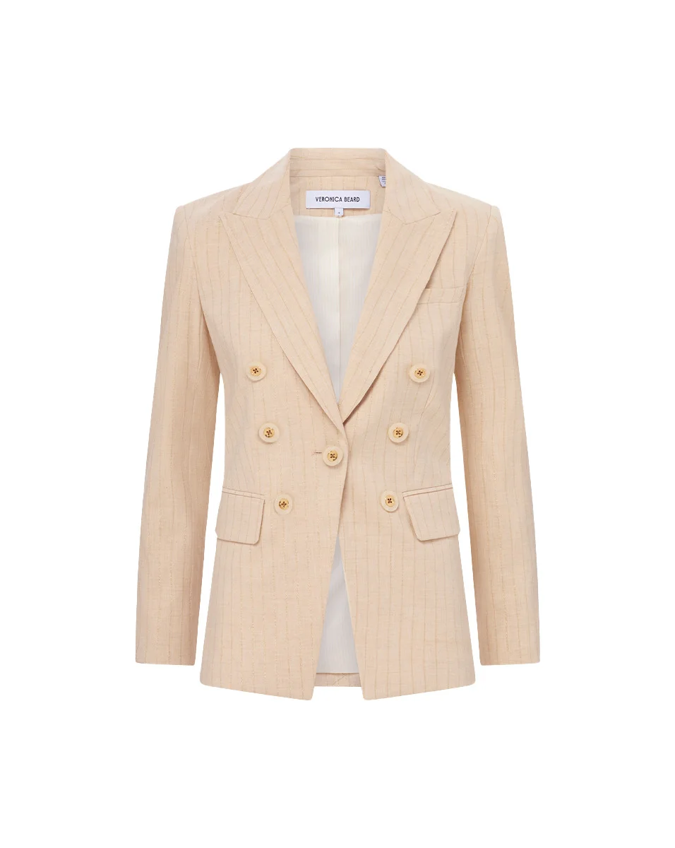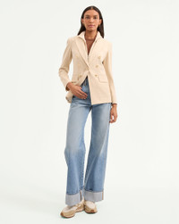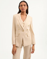 Product details A VB favorite, with gold pinstripes. Expertly tailored from Italian stretch cotton, the cream-colored Gaya dickey jacket is a relaxed, elongated silhouette that gives you the look of a boyfriend blazer. A peak lapel, lightly padded shoulders, and flap pockets complete the look. Pair with the coordinating Jude pant for a chic matching-set moment. Switch it up with a dickey for even more styling options. - 57% Cotton, 21% Polyester, 20% Viscose, 1% Polyamide, 1% Elastane - Lining: 95% Polyester 5% Elastane Fabric country of origin: Italy - Dry clean only, with buttons covered - Style #2504NV341532