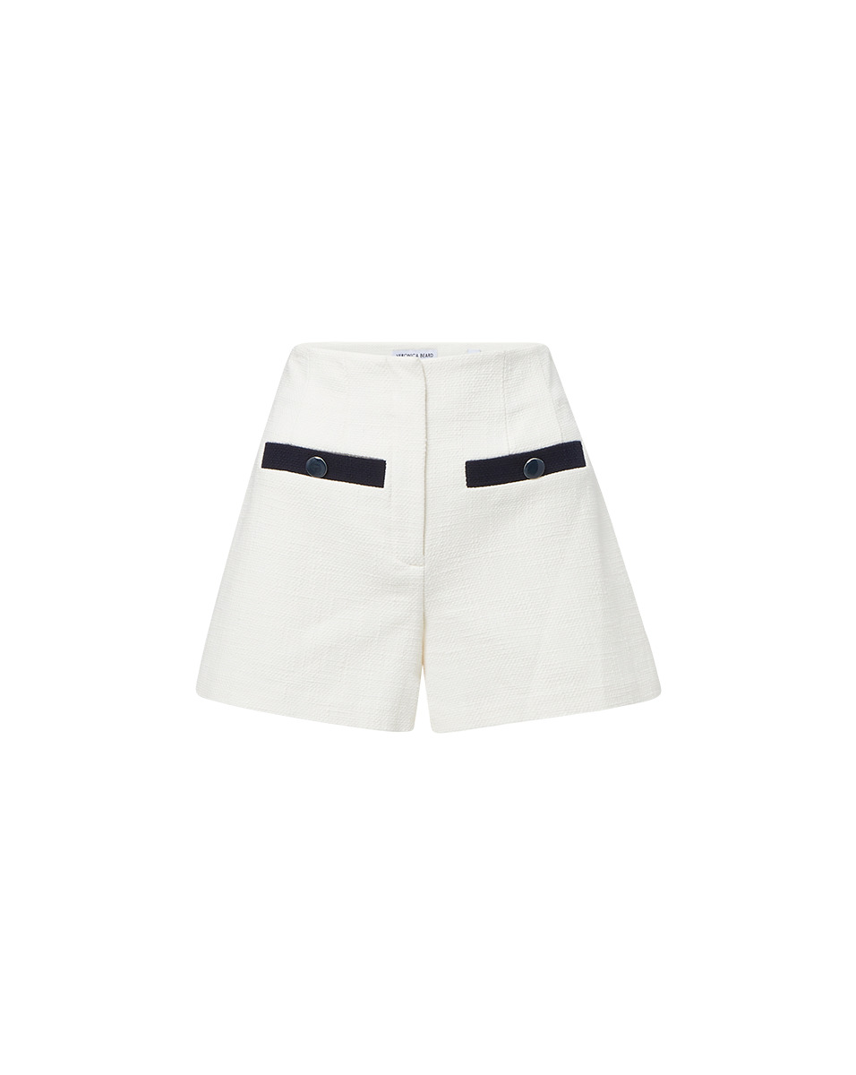 Product details Expertly tailored from textured stretch cotton, the Gershwin is a dressed-up take on the warm-weather essential. Equal parts polish and ease, the subtle A-line silhouette is finished with enamel buttons and bold contrast-color trims. Pair with the coordinating Beale jacket for a chic matching set. - 72% Cotton, 19% Polyester, 8% Rayon, 1% Elastane - Lining: 100% Polyester - Dry clean only - Style #2412TW4680258