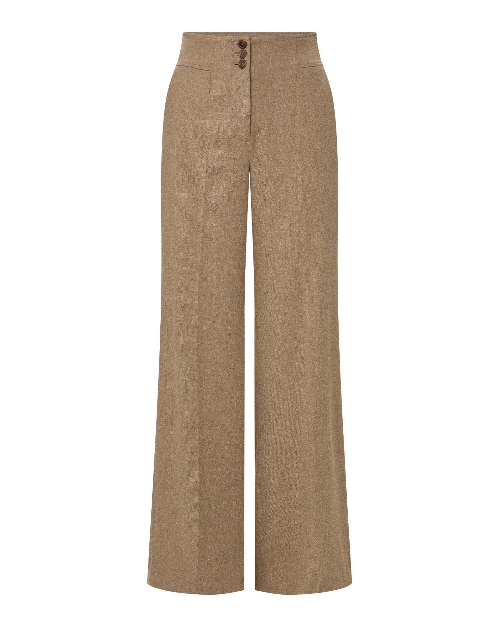 Product details A versatile trouser, designed to flatter. Expertly crafted in the USA from an Italian stretch-wool blend, the Giovanna pant features a darted high-rise waist—sans belt loops for a flat, clean look—and falls to a relaxed, wide leg. Side slant pockets, back welt pockets, and a triple button closure complete the look. Pair with a crisp tee or simple knit for polished ease. - 34% Polyester, 33% Viscose, 32% Wool, 1% Elastane - Lining: 100% Polyester - Made in the USA - Fabric country of origin: Italy - Dry clean only - Style #2509SU7360748