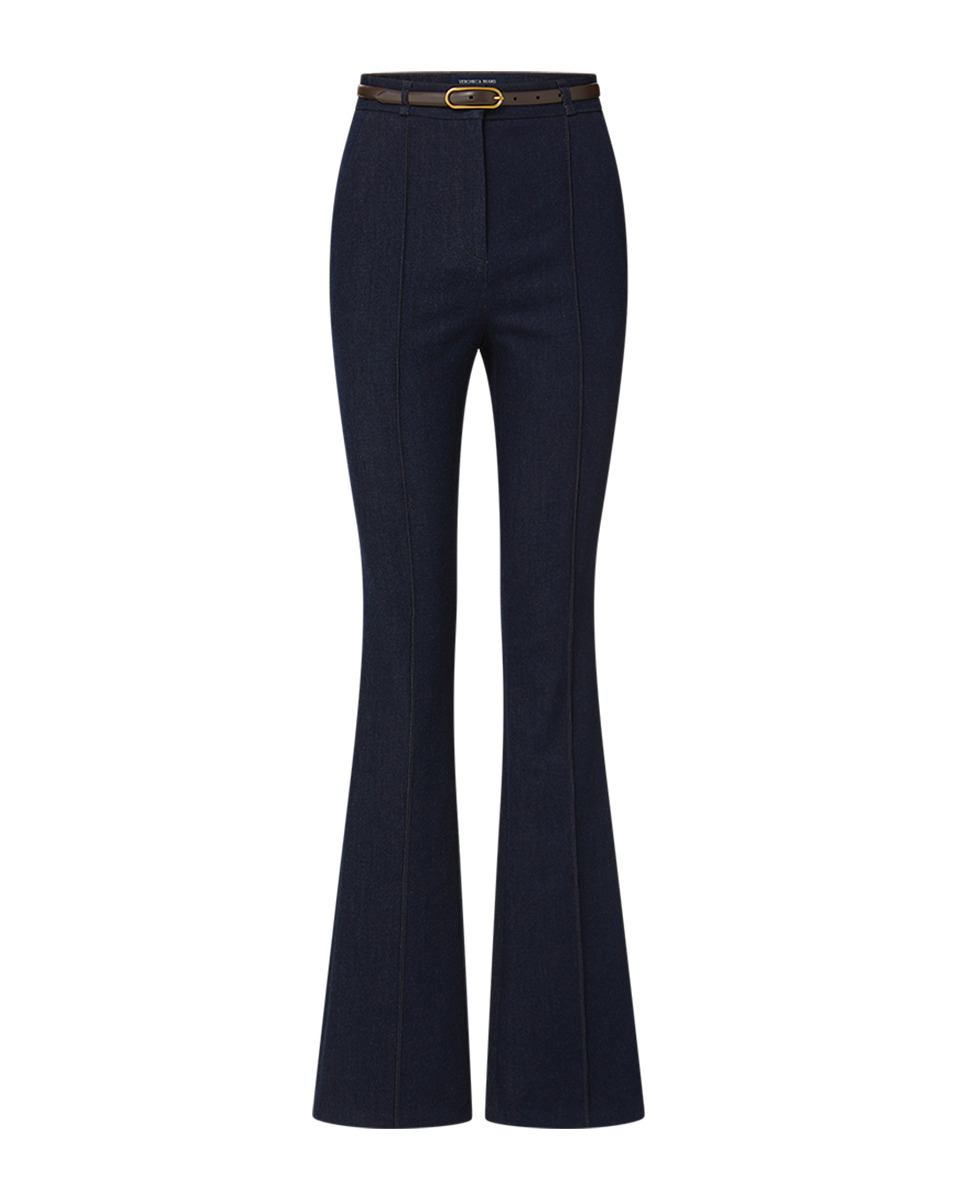 Product details The leg-lengthening denim pant. Expertly tailored from premium stretch cotton, the high-waisted Gracie pant is defined by a slim leg that falls to a slight flare and comes with a removable belt for easy styling. Tuck in a fitted, ribbed shell and pair with the coordinating Miller jacket. - 75% Cotton, 23% Polyester, 2% Elastane - Lining: 54% Polyester, 46% Viscose - Dry clean only - Style #2408NV2660494
