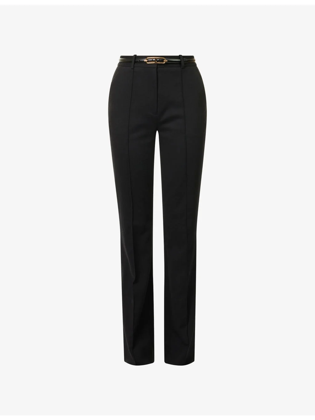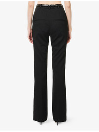 PRODUCT DETAILS - Veronica Beard stretch-wool trousers - 98% virgin wool, 2% elastane; lining 100% polyester - Concealed button, hook-and-eye and zip-fly fastening at front - Regular fit, high-rise, straight leg, belt loops, detachable belt, two slip pockets and stitched creases at front, two welt pockets at back, flared cuffs - Dry clean only - True to size - Size UK 8: rise 13in / 33cm, inside leg 33in / 84cm, leg opening 20in / 26cm - Model is 5ft 10in/1.78m and wears a size UK 8 - Lightweight, stretchy Ref: R04535652