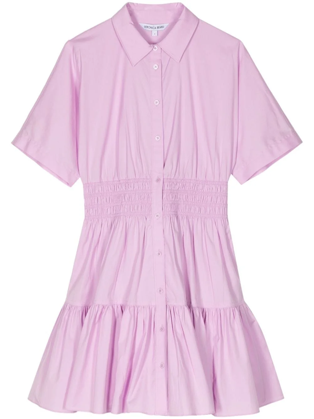 Greta tiered shirtdress Highlights - Light purple - Cotton blend - Poplin texture - Spread collar - Front button placket - Short sleeves - Smocked waist - Tiered skirt - Ruffle hem - Above-knee length Imported Composition Lining: Cotton 100% Outer: Cotton 84%, Polyamide 12%, Elastane 4%