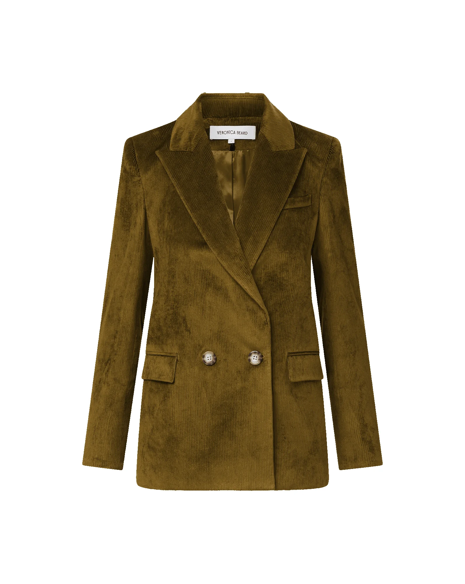 Product details The Sevyn you know and love—now in corduroy and dickey compatible. Expertly tailored from a premium Italian cotton blend, it features an elongated silhouette with a roomy fit and beautiful drape. Pair this stunning double-breasted jacket with the matching pant for a chic tailored set—and swap in your favorite dickey to switch up your look. - 55% Cotton, 43% Viscose, 2% Elastane - Lining: 100% Viscose - Fabric country of origin: Italy - Dry clean only - Style #2509CY1510795