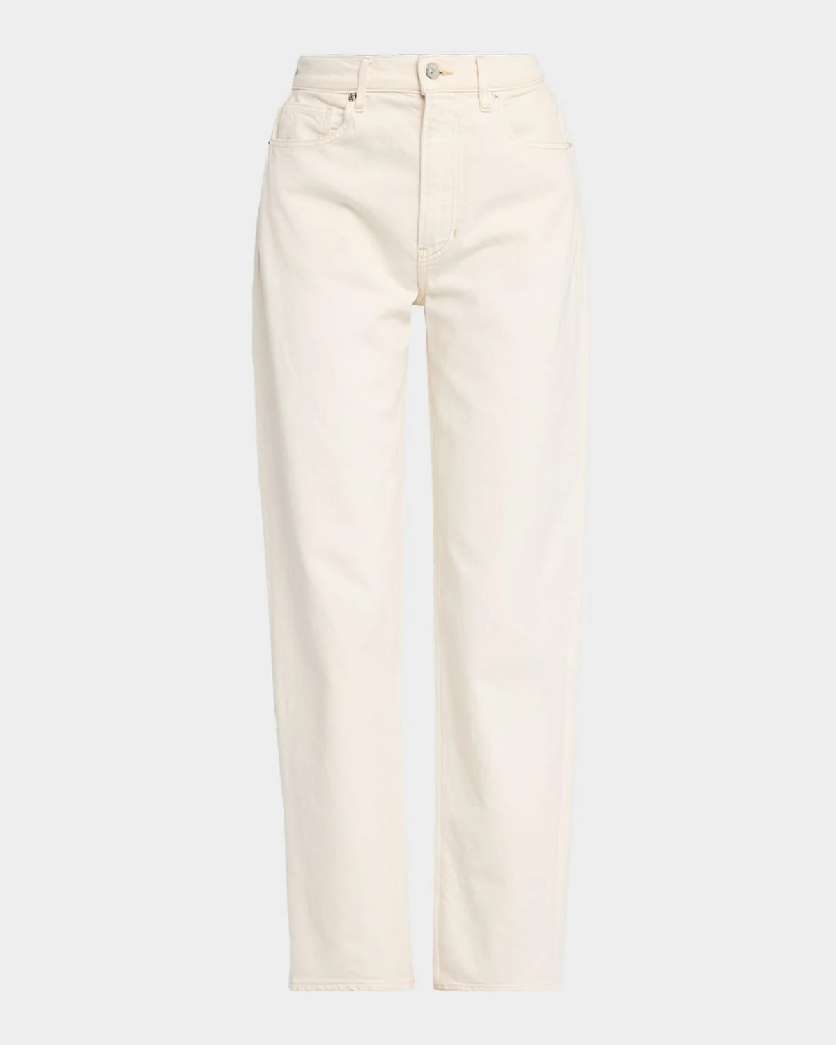 Veronica Beard "Harley" arc-leg jeans crafted from comfort-stretch denim & nbsp; Approx. 12" rise; 30" inseam High rise Five-pocket style Loose fit & nbsp; Full length Button/zip fly; belt loops Cotton/elastane Machine wash cold Made in USA SIZE & FITModel measurements: 5 & apos;10" tallModel is wearing a US size 4/Small