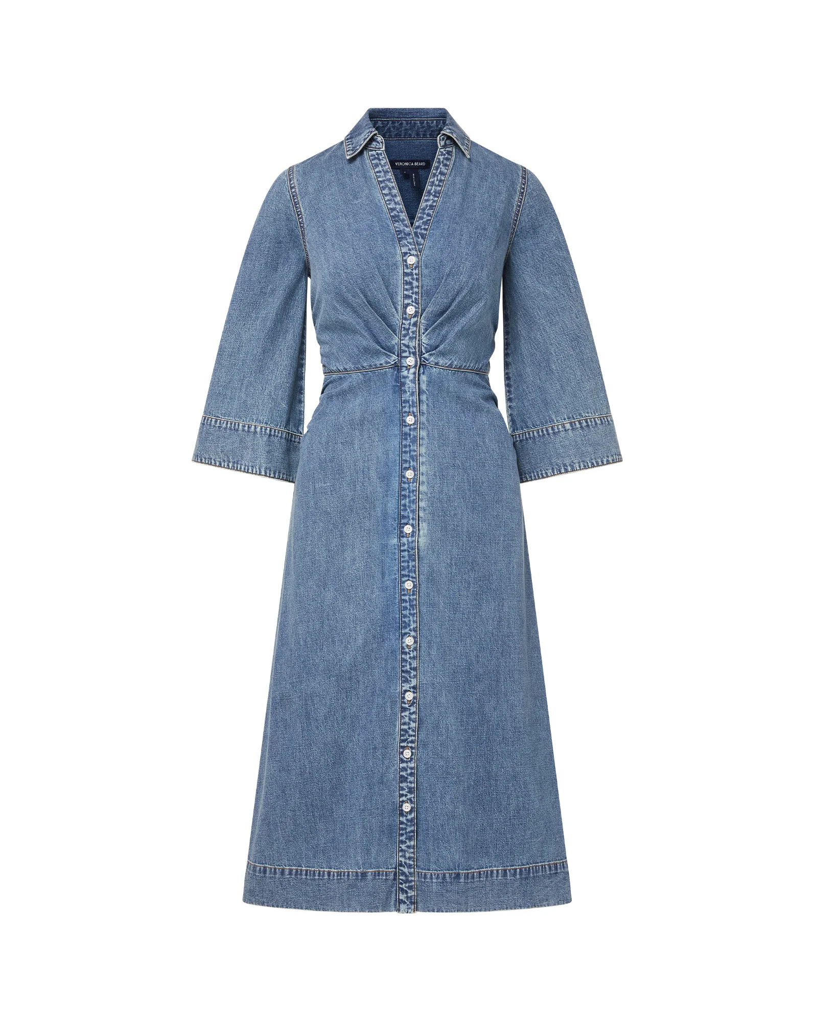 Product details The perfect shirtdress, in cool denim. Made from 100% non-stretch cotton in a cool blue wash, the Haydon dress features a fitted waist that falls to a breezy midi hem—plus, roomy half sleeves for ample coverage. Clean and streamlined, it's a versatile one-and-done style. Dress it up or dress it down—this is great for weekends and wanderlust. - 100% Cotton - Machine wash cold - Style #J25077100144RE