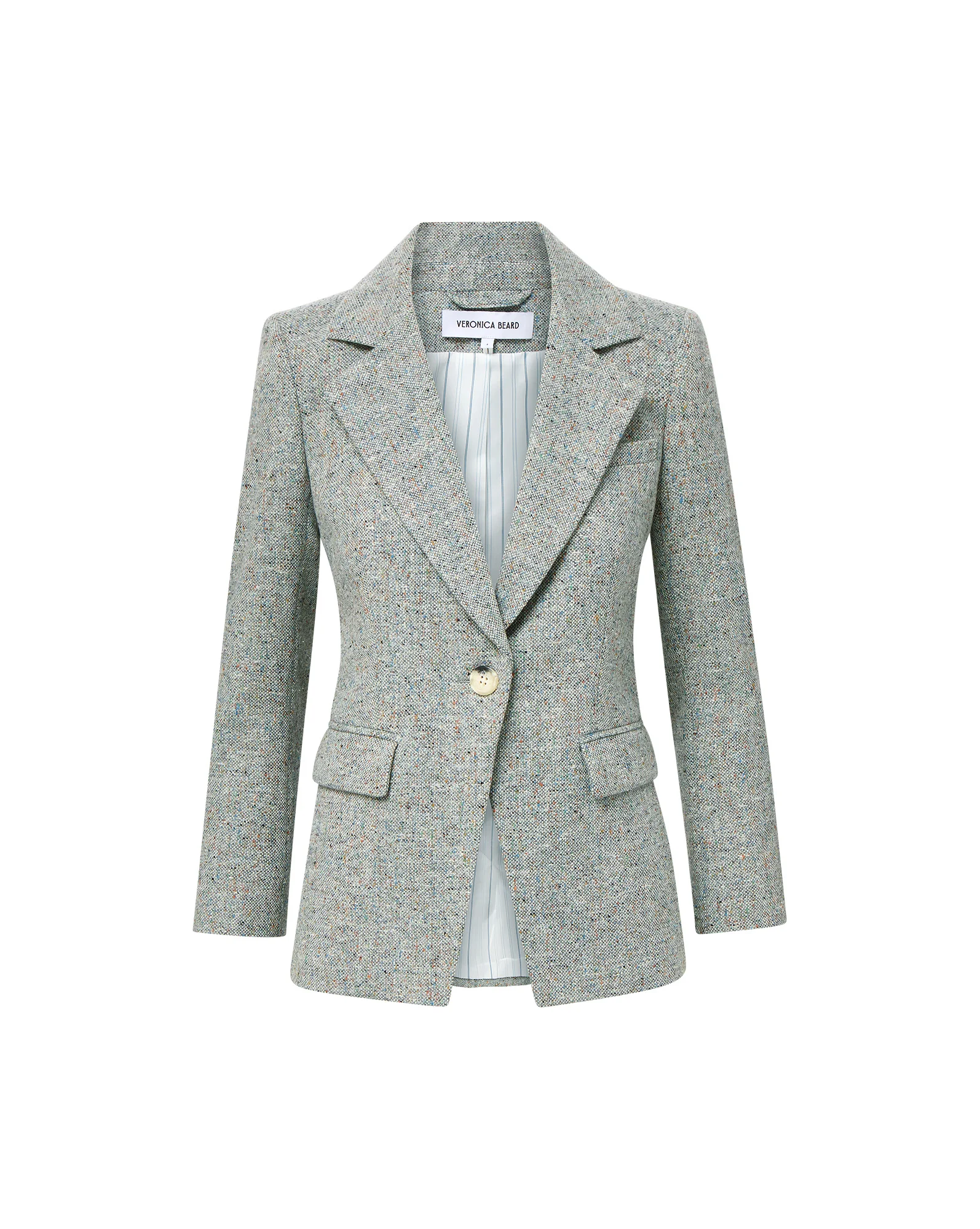 Product details A chic classic. The Healy single-breasted blazer is expertly tailored in a speckled blue Italian wool blend for rich texture and dimension. Flap pockets, marbled buttons, and a notched lapel lend it a timeless appeal. Pair with denim and your favorite boots for a polished look that carries you from desk to drinks. - 30% Wool, 25% Polyester, 25% Acrylic, 15% Silk, 5% Other Fibers - Linings: 100% Polyester; 95% Polyester, 5% Spandex Taffeta - Fabric country of origin: Italy - Dry clean only - Style #2508TW10911338
