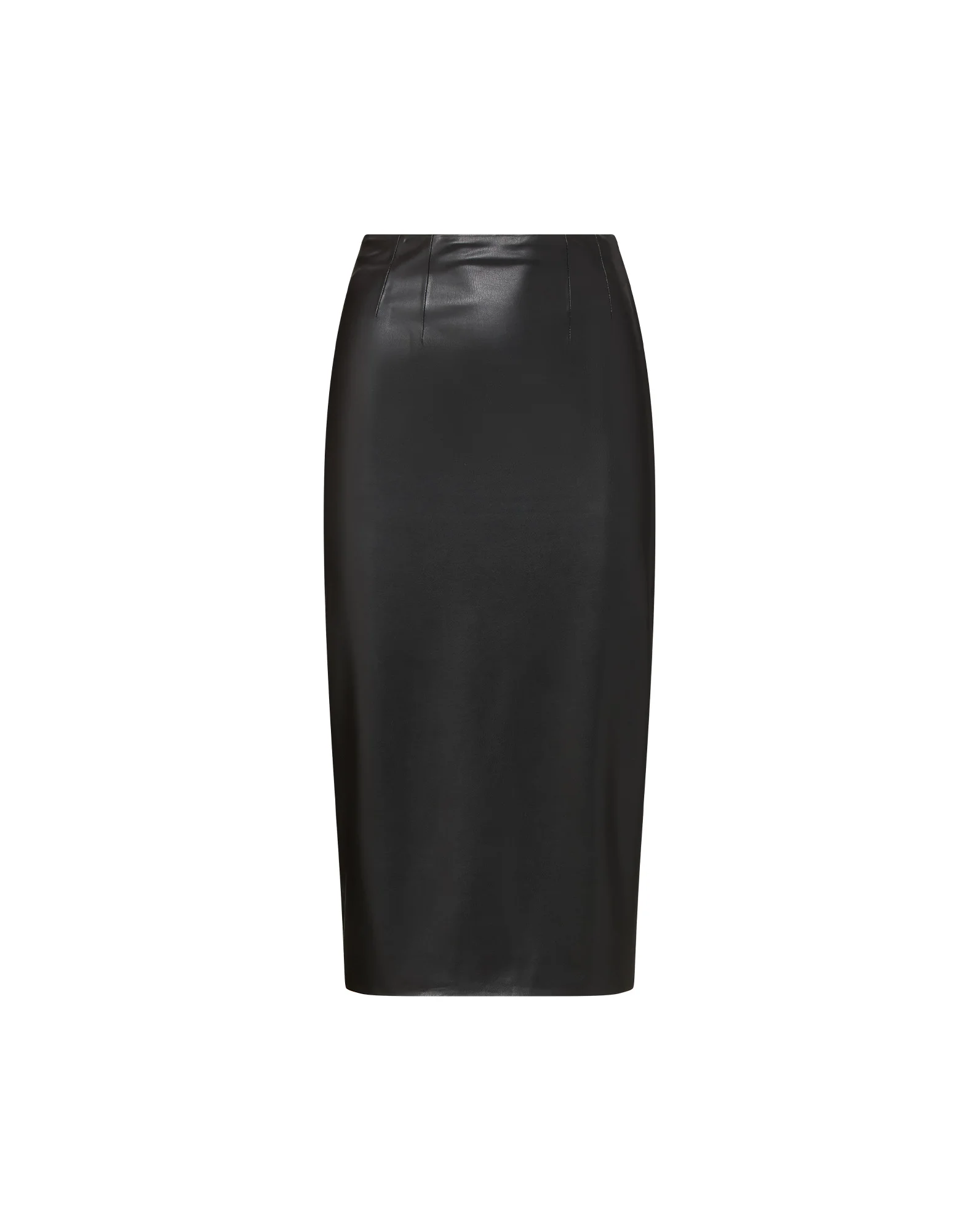 Product details The pencil skirt, perfected. Crafted from supple vegan leather, the Holmes features a streamlined midi silhouette designed for a flattering fit. Vertical seaming subtly defines the waist, while a back slit ensures ease of movement throughout the day. Consider it your go-to skirt—polished, versatile, and endlessly wearable. Pair with tall boots or strappy heels. - 100% Polyurethane Coated, 95% Rayon, 5% Elastane - Lining: 100% Polyester - Hand wash cold. - Style #2509LT5130359