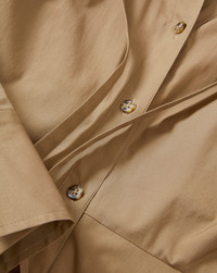 Product details A feminine take on the classic shirtdress. The Honora is crafted from premium stretch cotton with a long-sleeved, A-line midi shape. Featuring a collarless button-down silhouette and a delicate tie at the neckline, it’s finished with a deep hem for subtle structure. Pair it with ballet flats for everyday ease or tall boots for a layered look. - 97% Cotton, 3% Elastane - Dry clean only - Style #2508SCP21746