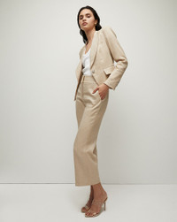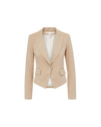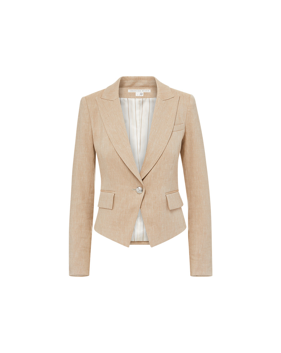 Product details Our best-selling Hosanna jacket is back, now in linen. This classic piece features single-breasted tailoring, seaming at the waist for a flattering finish, and a crisp notched lapel. Its linen blend keeps it easy and cool year-round. This chic style pairs well with everything from floral dresses to jeans. - 58% Linen, 27% Polyester, 14% Viscose, 1% Elastane - Lined - Made in USA - Professional dry clean only - Style #CORELN141520