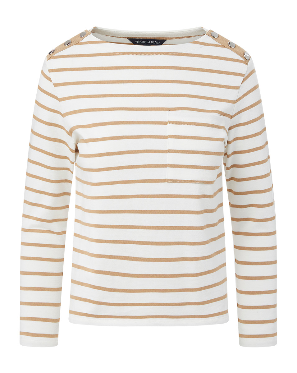 A summer essential, made from 100% cotton. Featuring a classic mariner stripe and three-quarter sleeves, the relaxed style is finished with decorative buttons at the shoulders and a front patch pocket. It’s a foolproof pairing with your favorite jeans. DETAILS & FIT - 100% Cotton - Length 22" | Sleeve length 28.5", based on a size S - Our model is 5'10" and is wearing a size S - Professional dry-clean only - Style #J2406JY89T0333