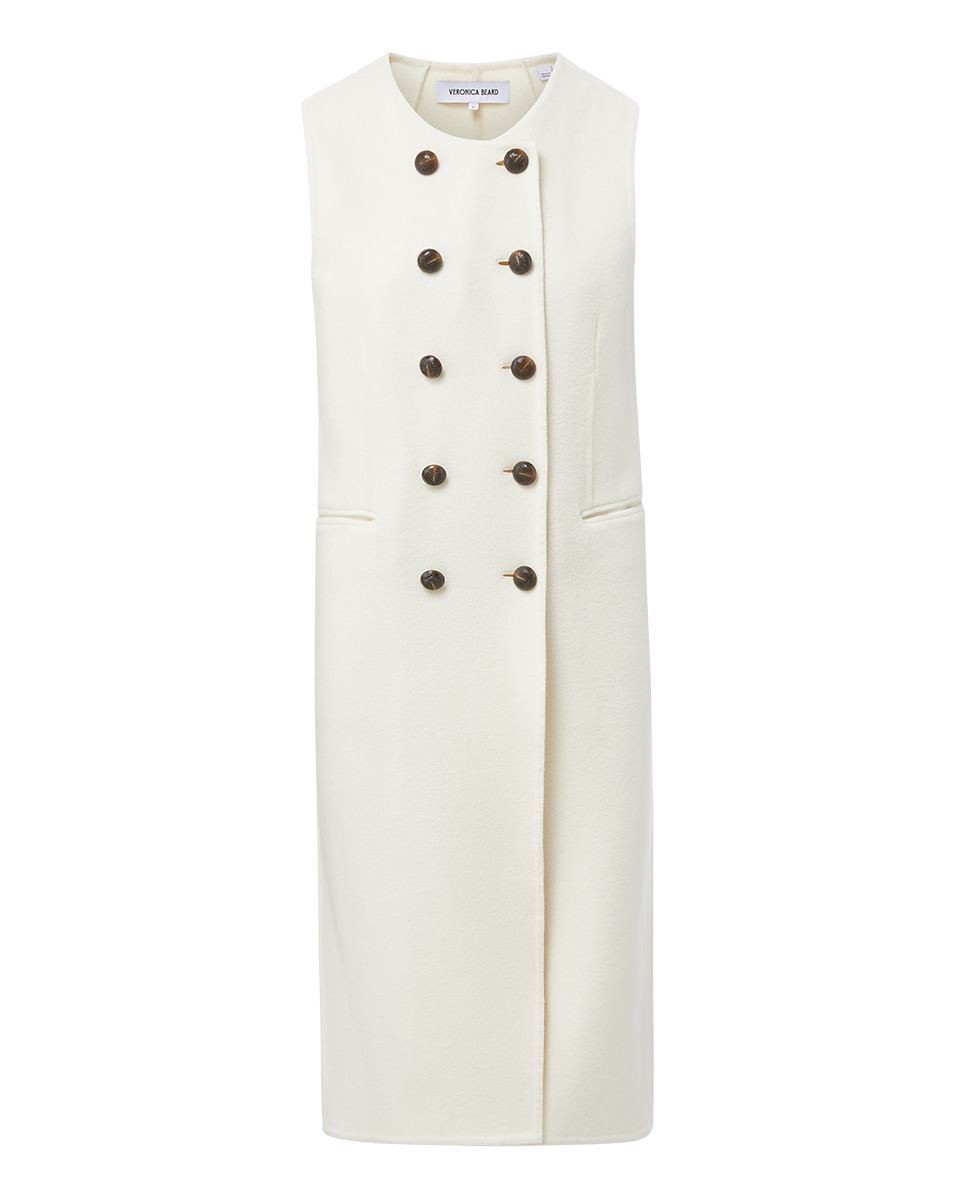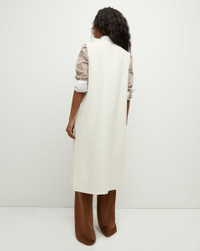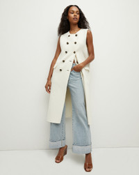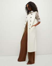 Made from an exceptionally soft Italian stretch wool, the Hoxton reimagines the classic coat as an elongated vest. Featuring a collarless double-breasted design and flap pockets, it's the perfect transitional layer—great with jeans, skirts, and suiting. DETAILS & FIT - 75% Virgin Wool, 25% Polyamide - Unlined - Length 44 3/8", based on a size S - Our model is 5'10" and is wearing a size S - Fabric country of origin: Italy - Dry clean only - Style #2407OW8170298