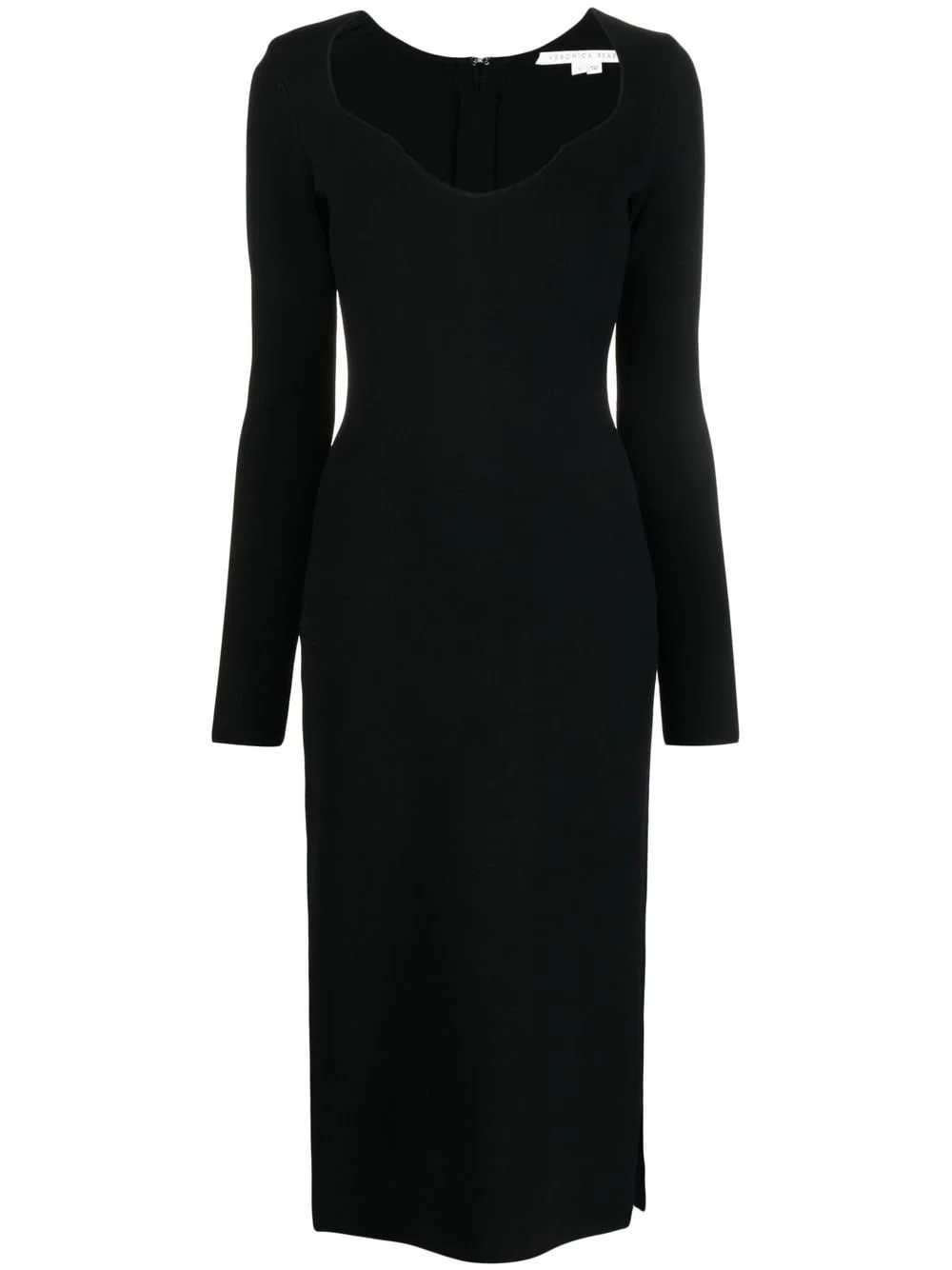 Imka V-neck dress black knitted construction V-neck long sleeves fitted waistline mid-length Imported Composition Body: Viscose 83%, Polyester 17% SIZE & FIT Model measurements Height 5 ft 9 in(1.76 m) Bust/Chest 29.13 in(74 cm) Hips 33.07 in(84 cm) Waist 22.83 in(58 cm) FittingInformation This piece fits true to size. We recommend you get your regular size Cut for a slim fit Made with a heavyweight fabric Washing instructions Dry Clean Only