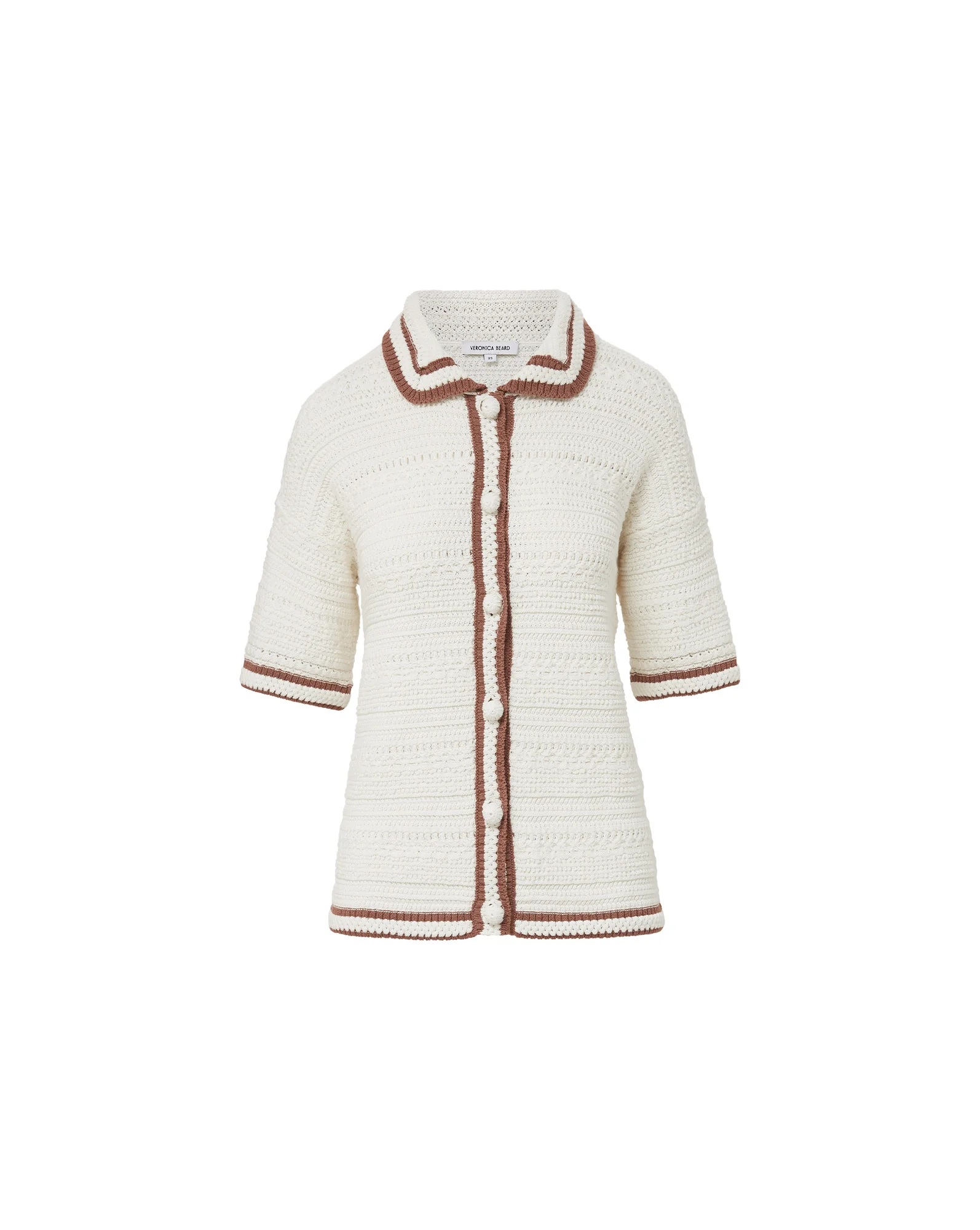 Product details A lightweight layer with endless versatility. Spun from 100% cotton, the Jadine sweater is an elongated white cardigan with a contrast-color trim in versatile sepia. Thoughtfully designed for comfort and ease, it features dropped shoulders, half sleeves, plus a knitted collar and buttons. A wear-forever staple, it's cozy yet lightweight—perfect for chilly offices and breezy summer nights. - 100% Cotton - Dry clean only - Style #2506KC4890644
