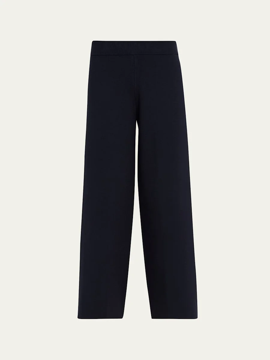Crafted from a soft midweight knit, the "Jenkins" pants by Veronica Beard are finished with double contrasting stripes along the sides for an athletic touch Approx. 9.4" rise; 29.5" inseam Midrise waistband Full length Wide legs Pullon style Viscose/polyester Unlined Dry clean Imported