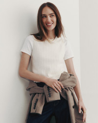 Product details A wardrobe essential, elevated. Spun from 100% pure Merino wool, the Jerrel is a soft ribbed-knit tank top featuring extra-wide ribbing at the crew neckline and hems. Simple yet polished, this perennially cool ivory top is perfect on its own or layered under your favorite VB jacket. - 100% Merino Wool - Dry clean only - Style #2507KA1490470