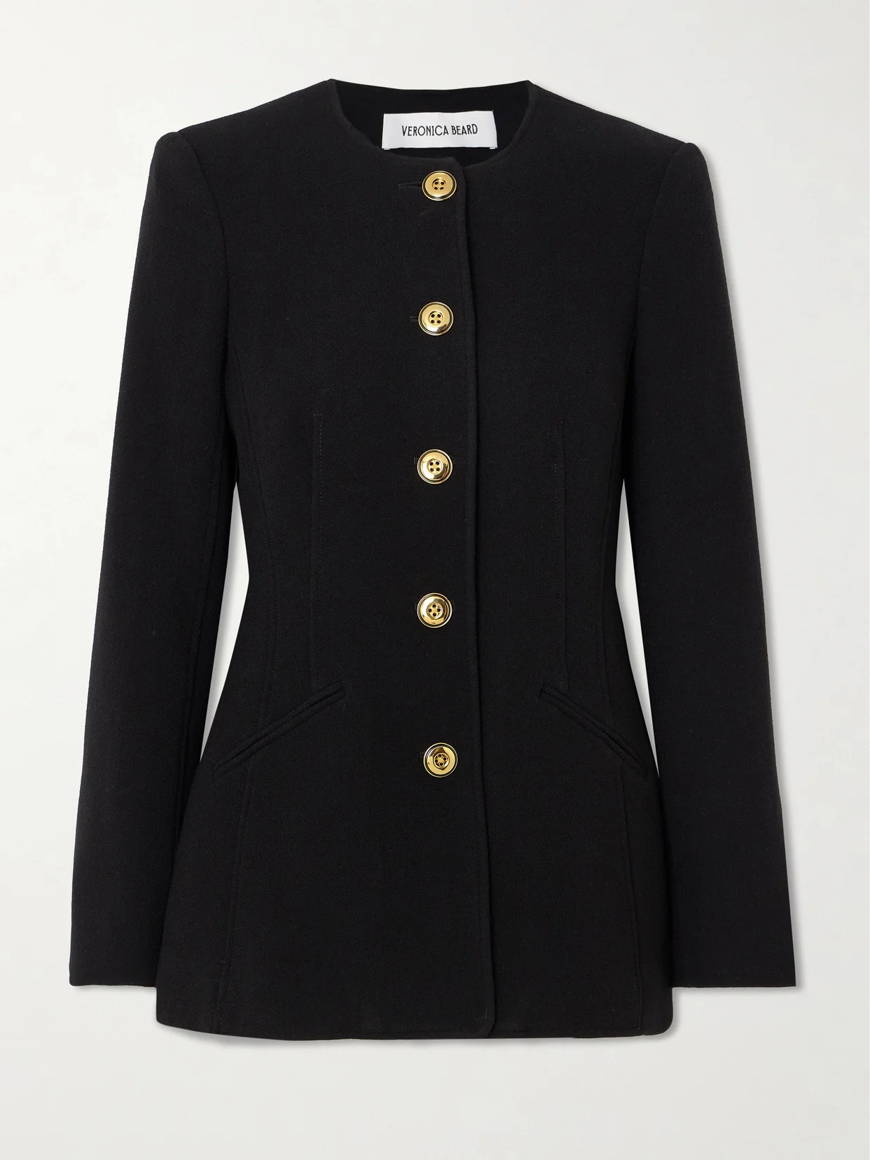 This 'Jessup' jacket shows off Veronica Beard's eye for contemporary, sophisticated tailoring. It's made from Italian wool-blend and is cut to fit close at the waist with defined shoulders and a flared hem. Match your jewelry to the gold-tone buttons.