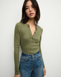 Product details The Henley top, perfected. We obsessed over every detail, from the super-fine ribbing and the curve of the neckline to the amount of stretch, which allows the top to hug the body beautifully. Expertly crafted from premium cotton, the Jocelyn is a year-round layering essential. - 96% Cotton, 4% Elastane - Machine wash cold - Style #J2412JY152T0299
