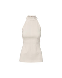 Product details Sleek and sophisticated. Crafted from a premium stretch blend in white, the Johanne top features a halter neckline with waist and back darting for a flattering fit, finished with a back zip closure. Pair it with the coordinating pants for a chic set, or layer over a maxi skirt for evening. - 68% Viscose, 28% Polyamide, 4% Elastane - Lining: 100% Polyester - Made in the USA - Dry clean only - Style #2511JY17841442