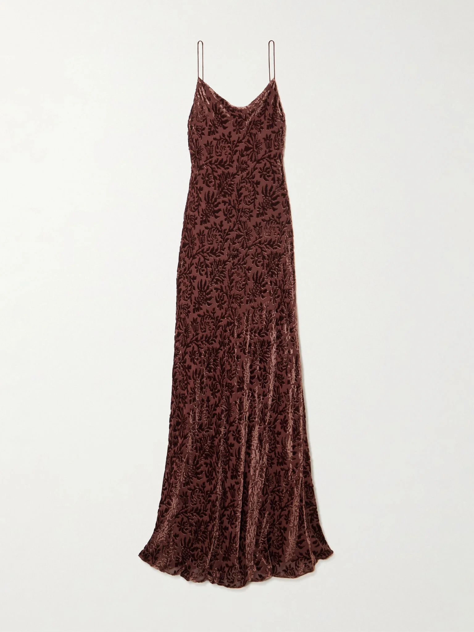 Veronica Beard's 'Jolynn' dress is cut from devore-velvet that's patterned with intricate flowers and vines. It's cut in a figure-skimming shape that's reminiscent of '90s slip styles and has an elegant scooped back. Lift the maxi hem with heels. Size & Fit - Fits true to size, take your normal size - Designed for a slim fit - Lightweight, non-stretchy fabric - Model is 180cm/ 5'11" and is wearing a US 2 Model measurements: - Bust: 80cm/ 31.5" - Waist: 65cm/ 25.5" - Hip: 89cm/ 35" Details & Care - Burgundy devore-velvet - Slips on - 68% viscose, 32% silk; lining: 100% polyester - Fully lined - Dry clean