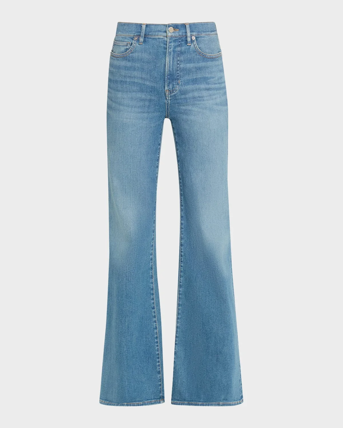 Veronica Beard "Joplin" flare jeans crafted from comfort-stretch denim & nbsp; Approx. 11" rise; 32" inseam High rise Five-pocket style Fitted through the hip and thigh Full length Button/zip fly; belt loops Cotton/polyester/spandex Machine wash cold Imported