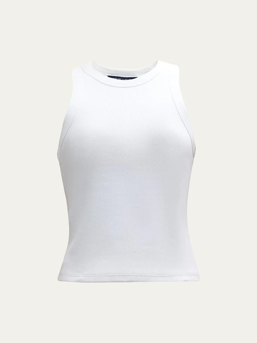 Veronica Beard "Jordyn" ribbedknit tank top Crew neckline Sleeveless Cropped fit Hem sits at the hip Pullover style Cotton/elastane Machine wash cold Made in Peru