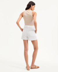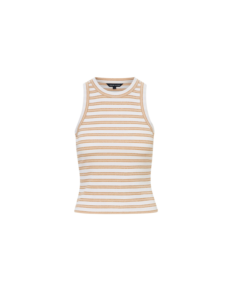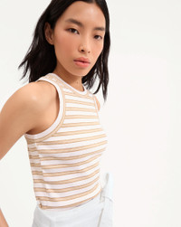 Product details Your favorite khaki and white striped layering piece in a new cropped length. A slim fit and a sleek, contoured racer-front design define the Jordyn tank top, which is made from stretch cotton for added comfort. It looks just as good tucked into jeans as it does layered under a blazer. - 96% Cotton, 4% Elastane - Turn inside out and machine wash cold. Lay flat to dry. - Style #J2504JY161T0326