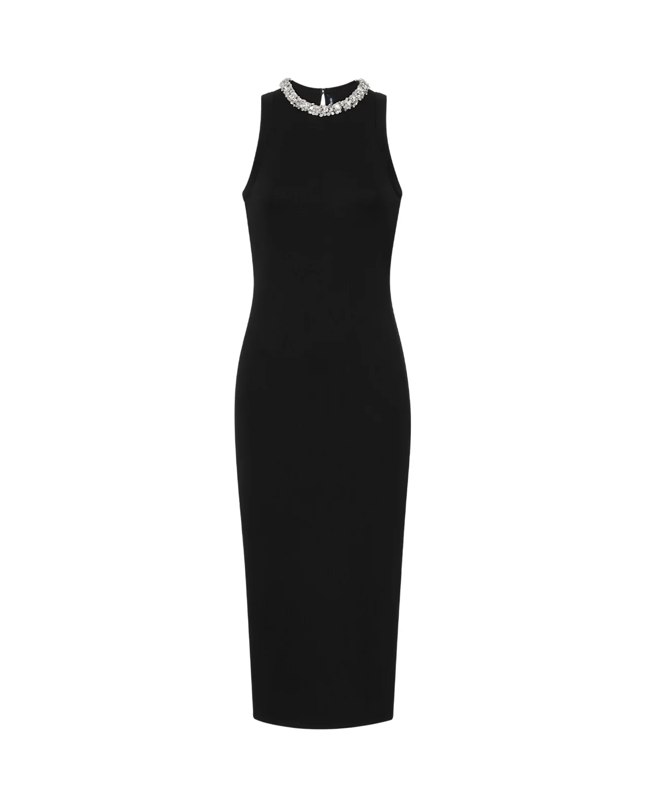 Product details The Jordyn dress you know and love—now with a high-shine twist. Crafted from black, softly ribbed stretch cotton, it features the same slim, curve-hugging fit and contoured racer-front design, finished with a rhinestone-embellished neckline. Statement-making yet incredibly comfortable, this midi is one you'll reach for all party season long—just add heels. - 96% Cotton, 4% Elastane - Dry clean only - Style #J2511JY15222527