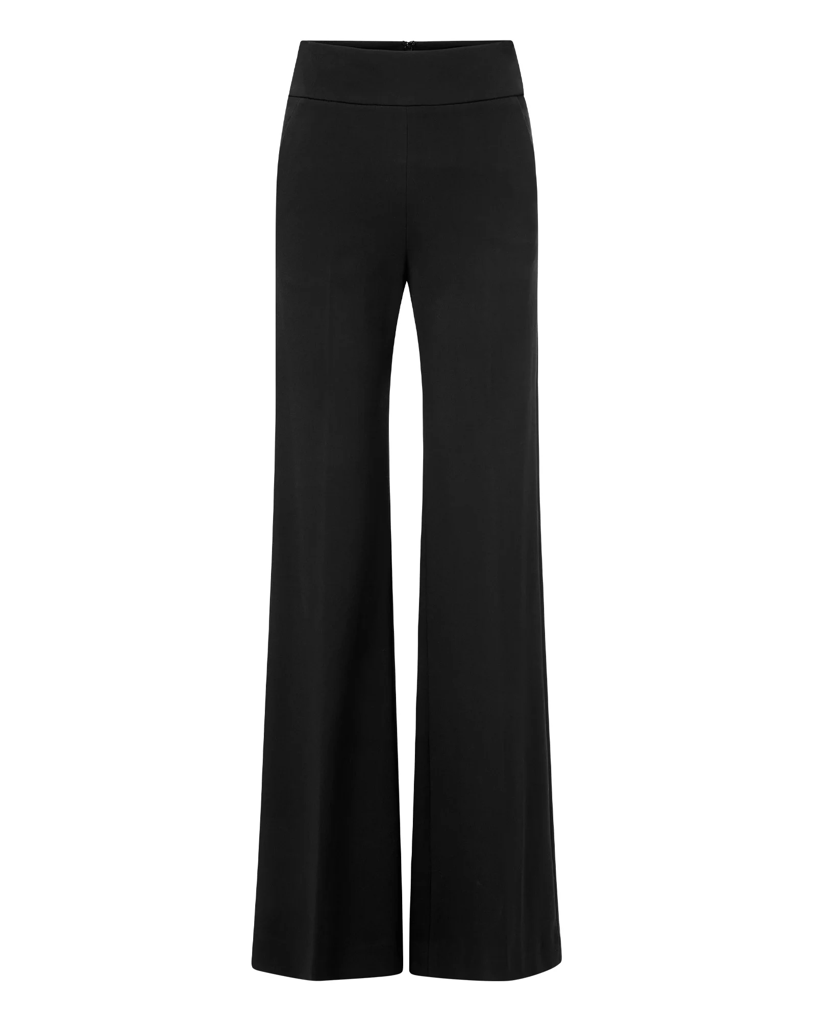 Product details The ponte pant, perfected. Crafted from a smooth, stretch-viscose knit in black, the Kalinda features a super-wide-leg silhouette with a high, three-inch-wide waistband for a sleek, flattering fit. A pressed front crease adds polish and structure, while the invisible back zipper closure ensures a clean finish. Combining the ease of a pull-on pant with the refinement of tailoring, dress it up for work or down for the weekend. - 68% Viscose, 28% Polyamide, 4% Elastane - Lining: 100% Polyester - Made in the USA - Dry clean only - Style #2511JY17860846