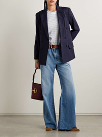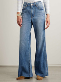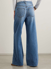 EDITORS'NOTES Veronica Beard's 'Kasey' jeans are cut from denim that's blended with a hint of silk for a softer drape through the wide legs. They're whiskered and faded to look perfectly lived-in and have a high waist and classic five-pocket construction. SIZE & FIT Model measurements: - Fits large to size, take one size smaller than normal - High-rise, cut for a wide-leg fit - Lightweight, non-stretchy fabric - Model is 175cm/ 5'9", normally wears a size 26 and is wearing a size 25 - Bust: 81cm/ 31.75" - Waist: 63cm/ 24.75" - Hip: 91cm/ 36" DETAILS & CARE - Blue denim - Button and concealed zip fastening at front - 72% cotton, 21% rayon, 7% silk - Machine wash