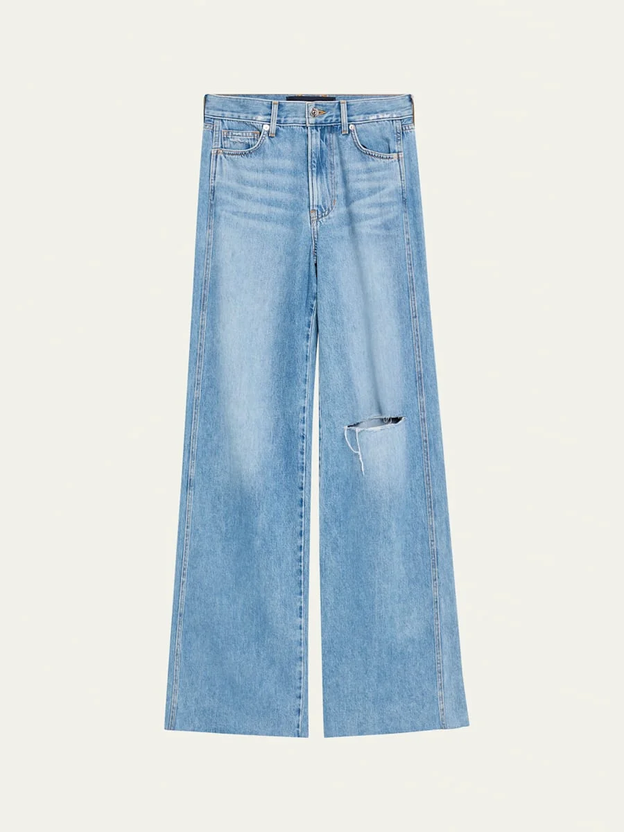 Veronica Beard "Kasey" wide-leg jeans finished with a raw hem in Dream Denim Dream Denim fabric is a premium cotton-silk blend that’s soft to the touch with effortless drape; our most comfortable denim yet. Approx. 11.5" rise; 32.5" inseam Mid-rise; sits high on the hip Five-pocket style Relaxed fit Full length Button/zip fly; belt loops Cotton/lyocell/silk Machine wash inside out Made in USA from imported materials Online Inquiries: BGS21_T6NB6| Store Inquiries: #5020377