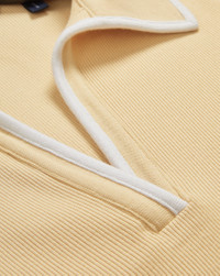 Product details Your favorite polo is back in yellow, now with white contrast piping along the collar and sleeves and a buttonless placket for a minimalist feel. Cut for a slim fit from a stretch-cotton blend, it's chic on its own or layered under a lightweight jacket for extra polish. Pair with wide-leg jeans or denim shorts for summer ease. - 96% Cotton, 4% Elastane - Turn inside out and machine wash on gentle cycle. Lay flat to dry. - Style #J2505JY152T0217