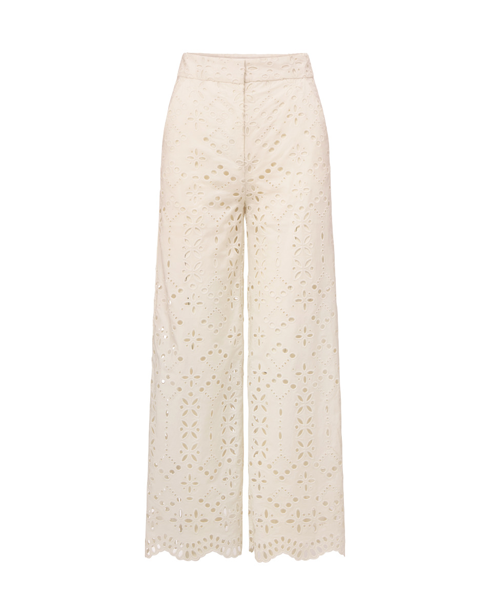 Product details Made from 100% cotton, the Kemper pant features an allover eyelet design and a charming scalloped hem. Cut for a relaxed, wide-leg fit, this features an ankle crop and an interior cotton lining for coverage. Pair with the coordinating Adelyn tank for an effortless matching set. - 100% Cotton - Lining: 100% Cotton - Dry clean only - Style #2412EY3460611