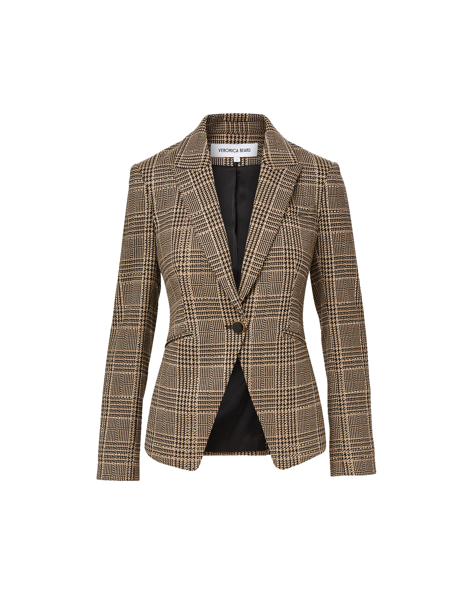 Product details A high-shine take on a tailored classic. Crafted from a luxe tailoring blend in glen plaid, the Kendryn is adorned with allover crystal appliques for sophisticated sparkle. Slim and fitted, it features a cutaway hem, angled welt pockets, and a single button closure. Pair it with denim to elevate the everyday, or with the Pavaline pleated skirt for a cool take on the skirt suit. Just add a dickey to switch up your look. - 64% Polyester, 33% Viscose, 3% Elastane - Lining: 96% Polyester, 4% Elastane - Dry clean only - Style #2510PL9111329