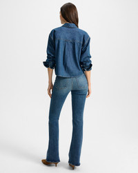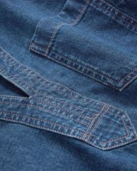 Product details Our endlessly versatile Khai shirt, reimagined in denim. Expertly tailored from premium cotton, it features a relaxed, long-sleeve silhouette with a rounded, cropped hem. A neat collar, a split V-neck, and a single patch pocket offer a softer, more refined take on the classic denim button-down. Pair with matching denim for a cohesive look, or brown leather pants for a rich, contrasting finish. - 100% Cotton - Machine wash cold - Style #J25087104071BB