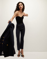 The ease of denim, the tailoring of trousers. Cut from our new stretch-denim in a deep indigo wash, the Kimra pant is the perfect fusion comfort and polish—perfect for days where you go straight to an event from the office. This piece is also detailed with slimming vertical seaming through its straight-leg silhouette and a cropped hemline, perfect for showcasing your footwear. Finished with side pockets, the high-rise style ensures all-day wearability. DETAILS & FIT - 75% Cotton, 23% Polyester, 2% Spandex - Rise 11 1/4" | Inseam 27 3/8" | Leg opening 15 1/4", based on a size 2 - Our model is 5'10" and is wearing a size 2 - Professional dry clean only - Style #2308NV2660356