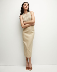 Product details A summer-ready take on the classic pencil skirt tailored from a French-made linen blend. The figure-hugging midi silhouette is vented at the back for easy movement. With the matching Liff vest, it’s a chic summer set. - 55% Linen, 43% Viscose, 2% Elastane - Lining: 100% Polyester - Fabric country of origin: France - Professional dry-clean only - Style #2406LN00230413