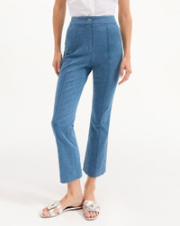 Product details Expertly tailored from a premium stretch denim, the Kimra pant features a clean, flat front for easy styling and a slightly flared leg while the cropped silhouette lets you show off your shoes. For a chic matching set, wear with the Liana top. - 98% Cotton, 2% Elastane - Unlined - Dry Clean Only - Style #2502NV5660701