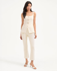 Product details Expertly tailored from a premium stretch cotton, the Kimra pant features a clean, flat front for easy styling and a slightly flared leg while the cropped silhouette lets you show off your shoes. For a chic matching set, wear with the Liana top. - 98% Cotton, 2% Elastane - Unlined - Dry clean only - Style #2503NV3860701