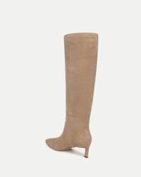 Product details A sleek boot with Western roots. Crafted from premium suede with subtle stretch, the Kinna features a slim-fitting, knee-high silhouette—widened for a more accommodating fit—and a curved, Western-inspired vamp overlay. A two-inch stiletto heel and a softly pointed toe add a refined, feminine edge, perfect for date nights and beyond. Style with dresses, skirts, or over slim-fitting denim for instant polish. - Suede - Lining: Leather - Heel Height: 2.12” - Store in a cool, dry place inside a dust bag - Clean under the supervision of a specialist - Style #J6206L1251