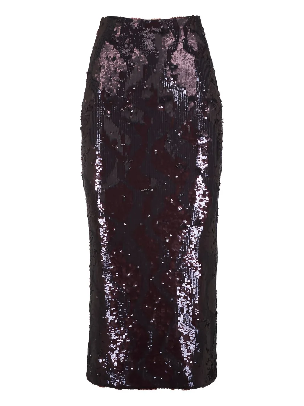 Koa sequin midi skirt Highlights - Red - Sequin embellishment - Rear zip fastening - Rear slit Made in United States Composition Polyester 94%, Elastane 6% Washing instructions Dry Clean Only